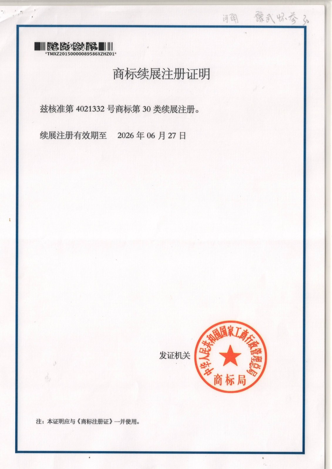 豫武懷參商標(biāo)30類